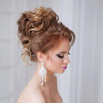 Как правило, для свадебного образа девушки часто выбирают высокие прически. Они на протяжении нескольких лет пользуются большим спросом у невест разного возраста. Подобные свадебные прически сделают девушку изящной, открывают шею и плечи. При этом украсить конструкцию можно жемчугом, повязкой, диадемой, цветами, лентами. Хорошо смотрятся эти прически на обладательницах круглых лиц, при этом длина должна быть хотя бы 20 см. Невестам с удлиненным овалом, треугольной формой лица не рекомендуется делать такой образ, т.к. это визуально удлинит его.