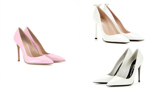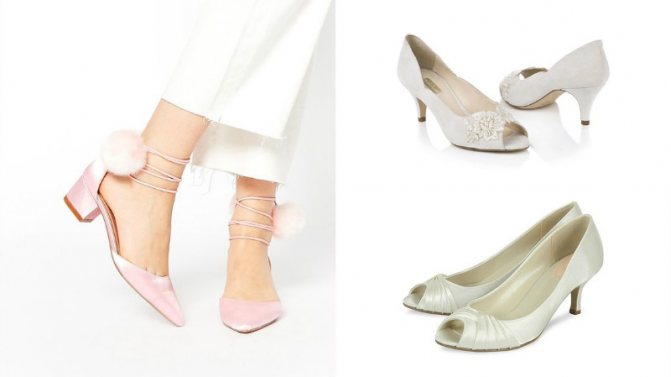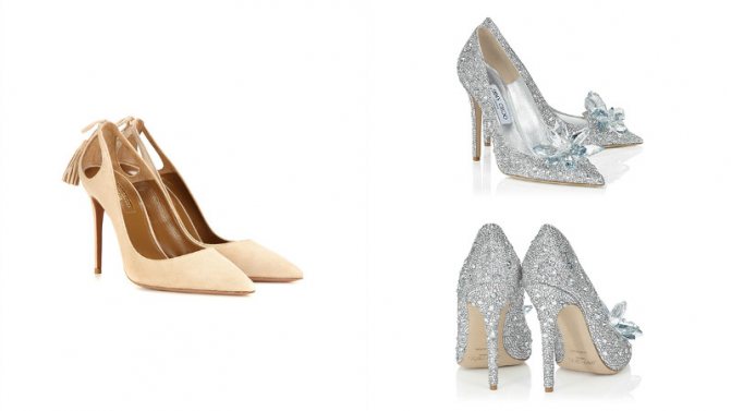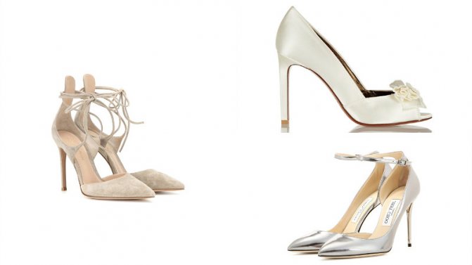- если невеста никак не может определиться с выбором модели, стоит остановиться на классических лодочках. Этот вариант обуви хорошо смотрится с платьями любых фасонов;