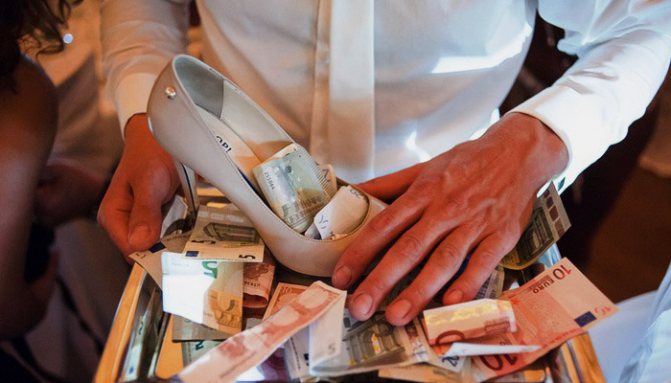 Украсть туфлю на свадьбе – это старинная свадебная традиция. На свадьбах незамужние девушки брали у невесты обувь, чтобы померять. Подруга, которой она была как раз, оставляла ее себе, требуя с жениха выкуп. Расплачивался молодой как мог: выполнял условия конкурсов, дарил сладости, цветы или платил деньги. Чтобы провести такой обряд, который является проверкой будущего мужа, следуйте этому списку шагов: