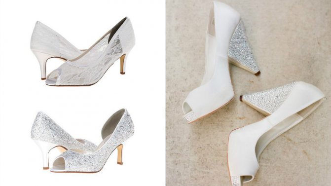 Если свадьба проходит в прохладное время года, то логично приобрести закрытые туфли. Для летнего торжества можно приобрести босоножки, либо туфли, имеющие вырезы на пятке или по бокам.
