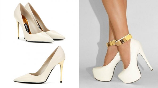 Но даже белые туфли выбрать бывает непросто, ведь цвет имеет большое количество оттенков. Идеально, если оттенок обуви идеально совпадает с тоном платья. Чтобы не ошибиться с выбором, следует взять с собой в магазин лоскут ткани, из которой сшит наряд.