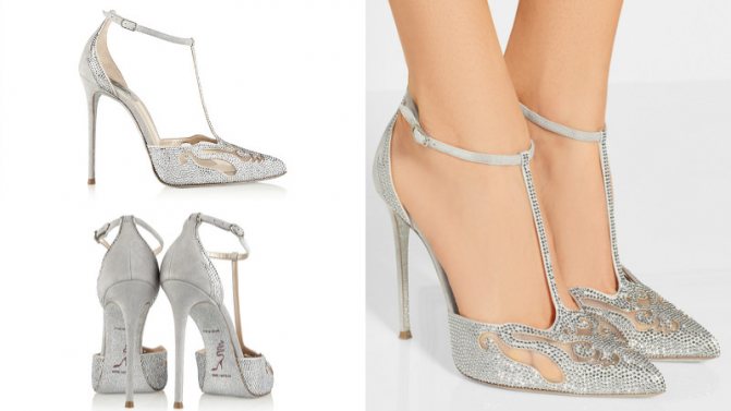 Интересной деталью является ремешок, расположенный на щиколотке. Эта деталь визуально укорачивает ноги, поэтому невысоким невестам ее лучше избегать. А вот высоким девушкам со стройными ложками такая модель подойдет идеально, так как она подчеркнет изящные щиколотки и красивые икры.