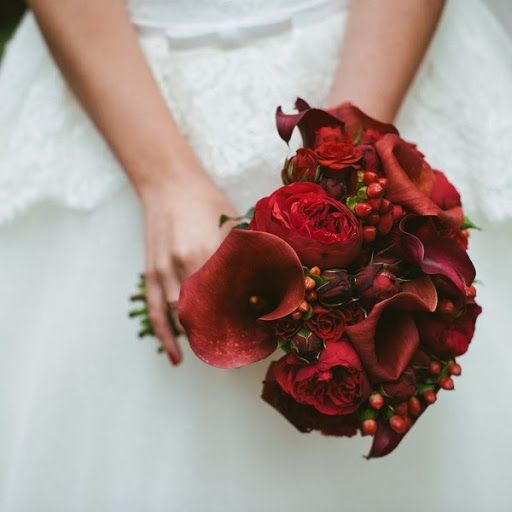 . Этот темный, глубокий оттенок красного всегда придает женщинам благородство и достоинство, даже когда он появляется в акцентах, например, в свадебных букетах.