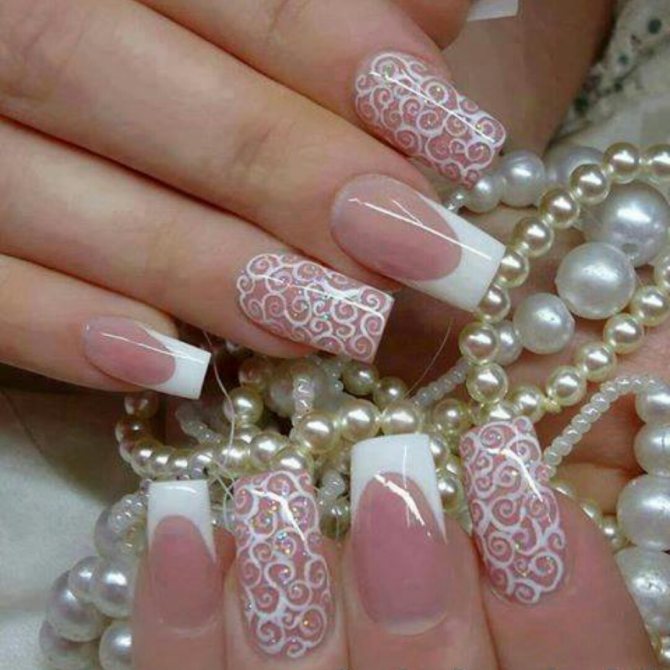 Совет! Кружевом совершенно необязательно покрывать всю ногтевую пластинку. Будет гораздо лучше, если сквозь него будут проглядывать нежные розовые ноготки, покрытые прозрачным лаком.