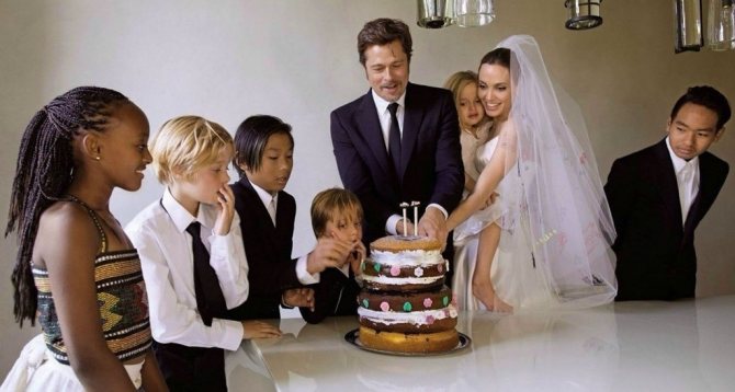 Если торжество проходит в узком кругу, то можно взять пример с торта на свадьбе Анджелины Джоли и Брэда Питта