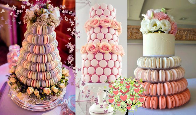 Торт с безе – прошлый век. Сейчас в тренде пирожные макарони. Рецепт традиционного безе апгрейдили изобретательные французские кондитеры – к яичным белкам и сахарной пудре добавили молотый миндаль и красители всех цветов радуги. Свадебный торт из пирожных – стильное решение для молодоженов.