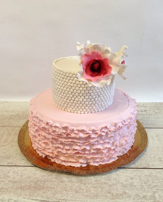 Торт с двумя ярусами обычно заказывают, когда число гостей небольшое. Вес изделия обычно колеблется между 3-4 кг. Рассчитать необходимый вес угощения можно исходя из веса каждого куска – 200 грамм на одного человека.