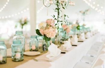 Сочетание свежей зелени мяты и нежного персика – это настоящий триумф красоты и изящества. Такое оформление идеально подходит для летней свадьбы. Букеты чайных кремовых роз дополняют веточками ароматной мяты, на скатертях персикового цвета стильно будут смотреться кружевные дорожки цвета мяты, чехлы стульев можно украсить бантами мятного цвета, а на столах можно расставить красивые плоские вазы с персиками и стебельками свежей мяты.