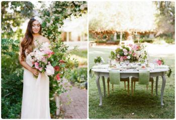 Традиционным декором на такой свадьбе будут служить свежие фрукты: спелые персики и абрикосы с зелеными листочками. Живые цветы персиковых оттенков можно разместить в керамических вазонах зеленого цвета.