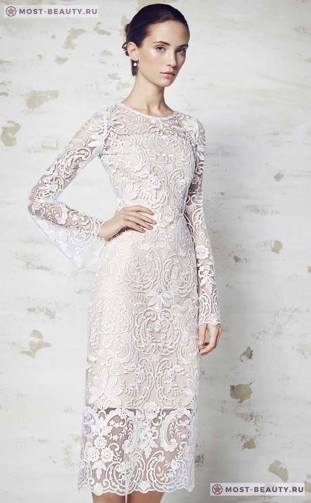 Одной из невероятно модных тенденций также является платья с кружевным рукавом, которые смотрятся невероятно красиво. Также при выборе платья с рукавом, хорошо будут смотреться и рукава из тюли, они будут выглядеть очень нежно, а издалека практически невидны.