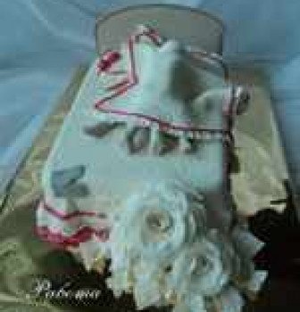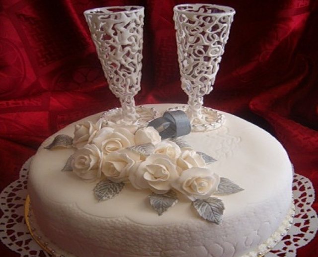 Выигрышно смотрится в оформлении торта бело – чёрный вариант или бело – серебристое сочетание цветов. Если добиваться строгой торжественности в презентации торта, можно выпечку обернуть чисто – белой мастикой и украшать чёрным или серебристым кружевом из глазури. Величественно будет смотреться ниспадающая лента, имитация драпировки шелка или массивный бант. Если обратиться к рекомендациям опытных кондитеров и посмотреть мастер – класс, можно попробовать оформить праздничный торт своими руками. Существуют пошаговые инструкции по использованию мастики для оформления кондитерской выпечки.