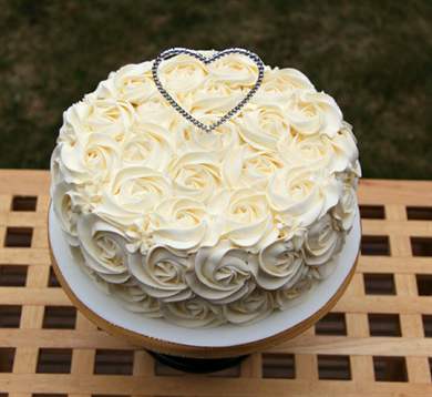 Чтобы разбавить торжественность угощения, его декорируют серебряными лентами и бантами из мастики, украшают сладкими бусинами, цветами из крема, ягодами и фруктами. Сегодня торты даже обвязывают обычными атласными лентами, добавляют к ним живые цветы и ажурные детали из пластика. Шикарно смотрится торт, перехваченный лентой в форме сердца, или классический двухъярусный тортик с окантовкой из мелких бусинок с цветами сверху.