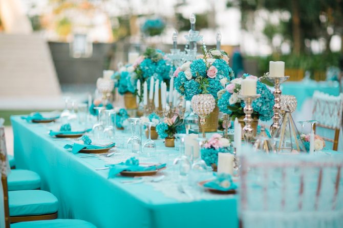 Организация бирюзовой свадьбы требует от молодоженов безупречного вкуса для умелого сочетания оттенков. Если есть финансовая возможность, лучше привлечь профессионального дизайнера, который с легкостью создаст волшебную атмосферу в любом помещении или даже на открытом воздухе.