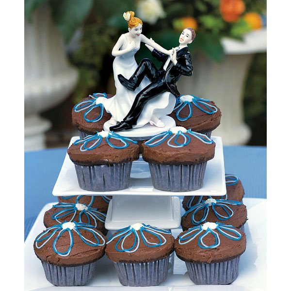 Все более модной становится подача не одного роскошного торта, а множества сладких десертов. Такой трюк позволяет достичь разнообразия форм, вкусов и начинок, среди которых каждый гость сможет выбрать себе лакомство по вкусу. Удобным вариантом является подача пирожных-капкейков, расположенных на огромной форме с многочисленными ярусами.