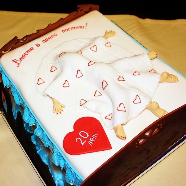 Интересные идеи оформления торта на 20-летний юбилей совместной жизни: