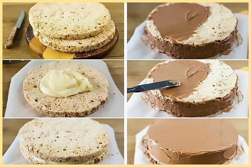 К нему подойдёт практически любой вид крема, особенно сливочный. Процесс готовки такого торта состоит из трёх этапов: