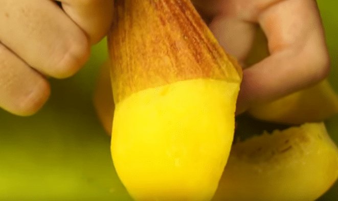 - С персиков снимаем шкурку, измельчаем.