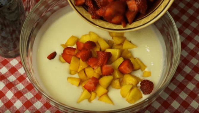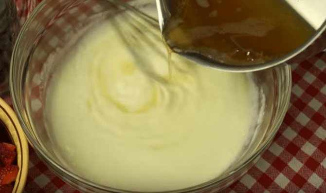 - Соединяем желатин с йогуртом, аккуратно перемешивая.