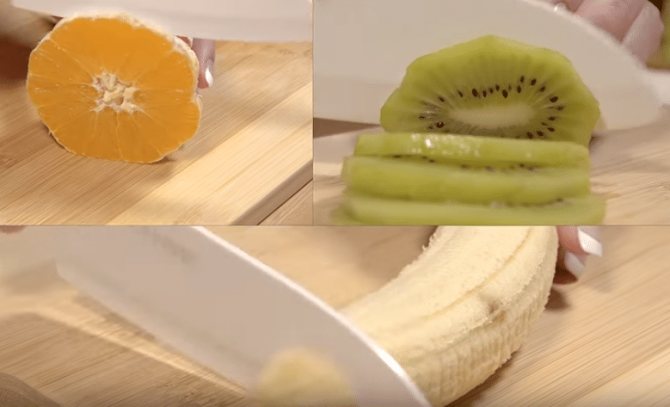 - Нарезаем бананы и киви кружочками.