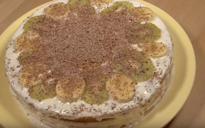 Простой фруктовый торт без выпечки с желатином и сметаной