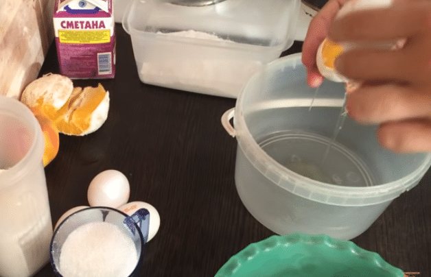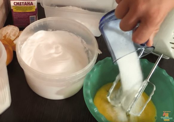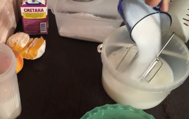 - Добавив сметану, растительное масло, еще взбиваем.