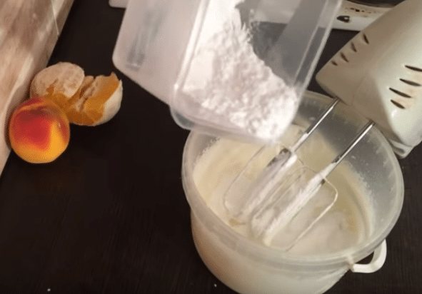 - Добавляем сахарную пудру, взбиваем.