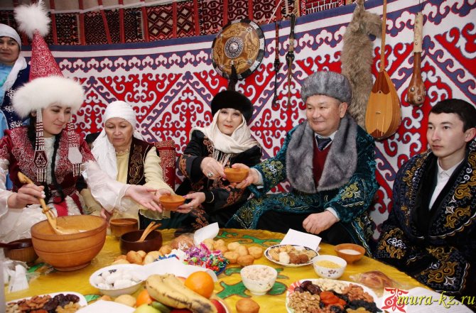 Раньше по старинным казахским обычаям молодые отправлялись по гостям вместе с подарками. Они объезжали всех родственников и дарили каждому памятный сувенир. В ответ родня вручала что-то необходимое для быта и обихода.