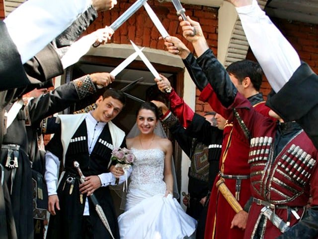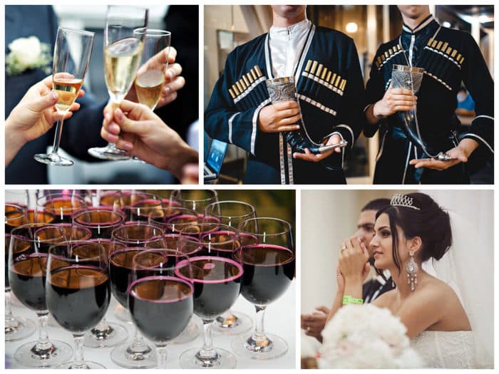 Ни одна грузинская свадьба не обходится без приветственных речей, тостов. У грузин, также сохранился обычай поздравлять молодоженов грузинским красивым тостом: