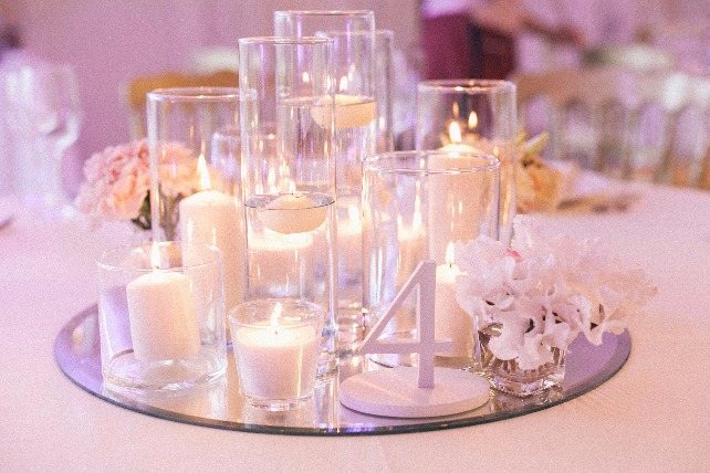 Основой свадьбы является торжество любви, нежность и романтика. Подчеркнуть эти аспекты в процессе проведения праздника удастся благодаря милым вещицам. Воздушные шары и струящиеся ткани – лучшее решение для романтиков. Создать интимную обстановку поможет правильно продуманное освещение. На столах у гостей поместите небольшие сосуды, заполненные водой с капельками глицерина вперемешку с цветочными лепестками. На поверхности сосуда оставьте плавающую свечу в колбе.