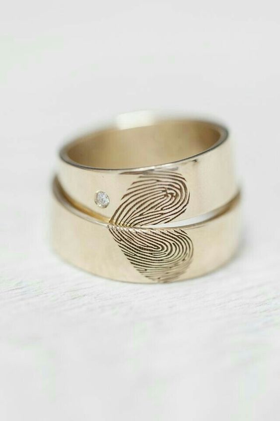 Вот где можно дать волю воображению. Сегодня дизайнеры готовы воплотить самые смелые фантазии молодоженов и не устают предлагать все более неординарные варианты. Кольца с отпечатками пальцев молодоженов или с их рисунками кардиограмм сделают ювелирные изделия персонализированными. В них всегда будет присутствовать частичка друг друга. А кольца в виде шин идеально подойдут паре, не представляющей свою жизнь без дороги и байков.