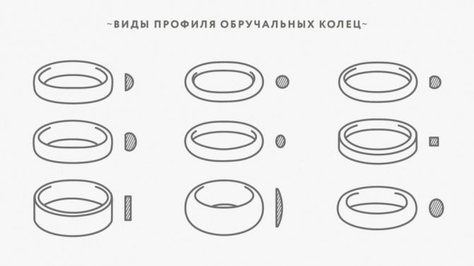 По форме оправы обручальные кольца со вставками условно делятся на: