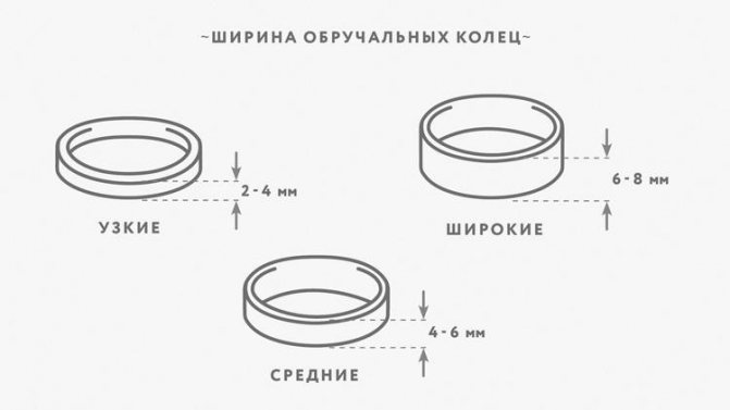 Подобные кольца могут иметь ровную или выпуклую поверхность. Обычно мужские классические обручальные кольца шире женских: ширина мужского кольца, как правило, составляет 5 – 6 мм, женского – 3 – 4 мм. Такие кольца имеют свои достоинства: