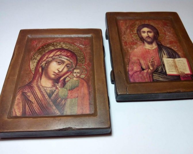 - 2 православные иконы, одна Христа Спасителя, вторая – Божьей Матери;