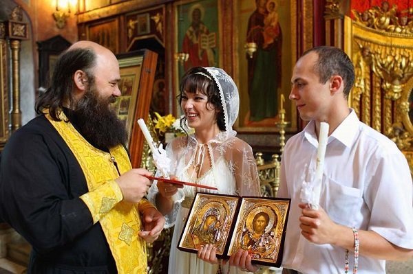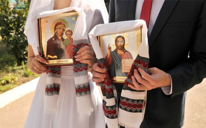 В течение сакрального обряда батюшка благословит святынями невесту и жениха, женщину – Божьей Матерью, а мужчину – Иисусом Христом. После же окончания церемонии, обвенчанные супруги выходят из храма с этими образами в руках. Считается, что данный ритуал наполняет души молодых духовностью.