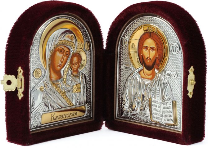На современные свадьбы покупают венчальную пару в виде складня из двух образов Божьей Матери и Спасителя. Ее очень удобно хранить в любой квартире или доме.