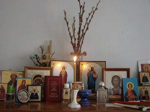 На время молитвы перед иконами зажигают свечи, поэтому следует позаботиться о пожарной безопасности