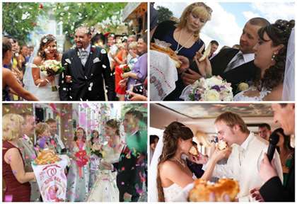 - по пути молодых осыпают лепестками цветов, конфетками или рисом;