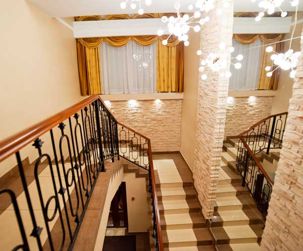 Обратите внимание, что подъём по лестнице достаточно крутой, что может вызвать у молодоженов и приглашенных некоторые сложности, особенно у гостей преклонного возраста. К тому же лифт в ЗАГСе не предусмотрен. На верхнем этаже находится узкий коридор, который ведёт в комнату невесты и жениха, а также в зал церемонии.