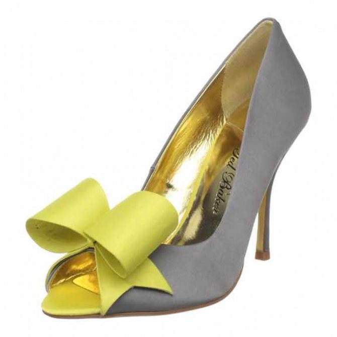 - Платье и аксессуары. Для начала невесте следует определиться с собственным образом – нежный и женственный или более яркий и броский. Для первого варианта выбирайте платье по стилю классическое, светлое. По фасону – приталенное или пышное, длинное в пол или немного покороче. Желтый пусть служит акцентом в виде окантовки, пояса, вставок на юбке или топе, оборок или кружева. Можно подобрать желтые туфельки, перчатки, фату или украшение для волос. Если желаете выглядеть более ярко, выбирайте полностью желтое платье того оттенка, который вам идет.