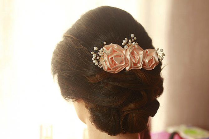 Розы из ткани в волосы на свадьбу
