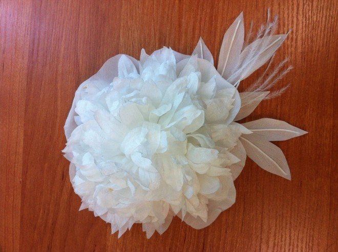 Красивый крупный цветок для свадебной прически готов. Остается только закрепить его в волосах.