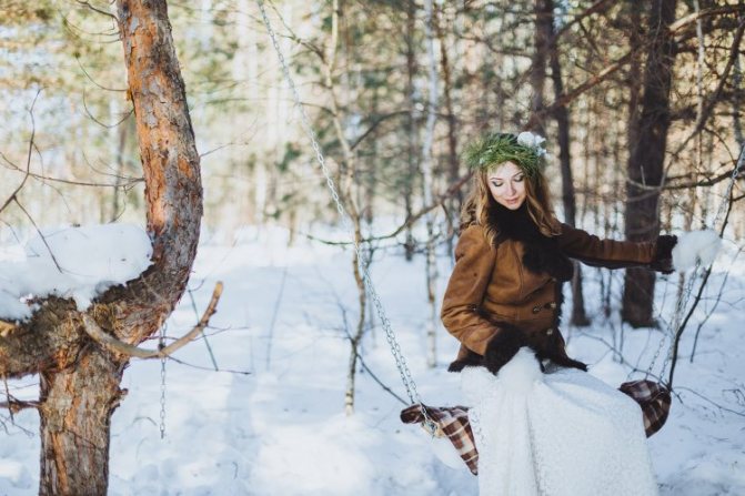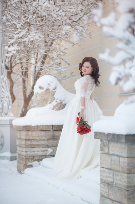 Для красивой зимней фотосессии важно, чтобы все гармонировало между собой: наряд, обувь, одежда, прическа, макияж и ваше настроение. По моему опыту, если у вас только одно платье – и для прогулки, и для торжества в помещении – не приобретайте теплое свадебное платье из плотных тканей. На празднике вы будете много двигаться, танцевать, фотографироваться с друзьями, участвовать в конкурсах. В теплом платье вы быстро вспотеете, макияж потечет, на фото вы получитесь с блестящим красным лицом. Одно расстройство! Я – за умеренную многослойность: накидки, шали, кардиганы, манто, шубки – выбор сейчас просто огромен.