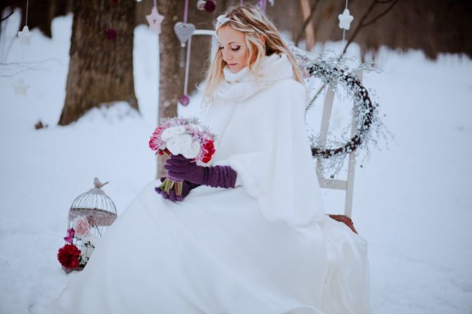 Зимний образ невесты подразумевает наличие тёплых аксессуаров, особенно – верхней одежды. Модные кутюрье балуют невест разными вариантами, как можно утеплиться в день свадьбы стильно и красиво.