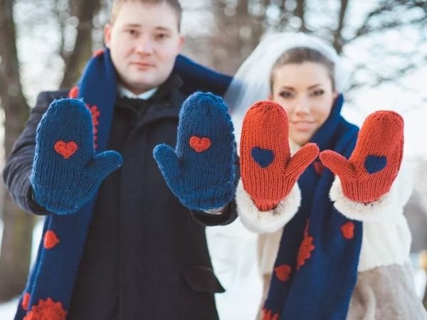 Будьте уверены, подобрав аксессуар в тон верхней одежде, или сделав яркий акцент на руках и головном уборе, ваш образ только выиграет! А вы не будете отвлекаться во время зимней свадебной фотосъёмки на мысли о кружке горячего чая, сохранив хорошее настроение и крепкое здоровье.