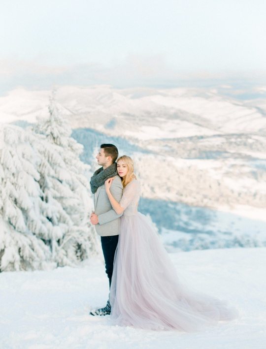 - образ невесты в платье с декольте и открытыми руками, на фоне зимних пейзажей, привлекает куда больше внимания, чем аналогичные фотографии в иное время года;