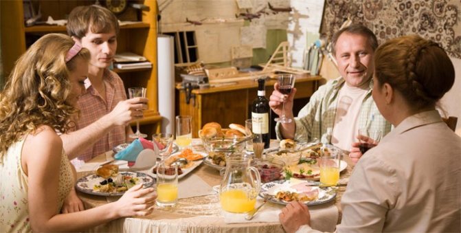 Традиционное знакомство с родителями обычно проходит в домашней обстановке. Мама жениха накрывает стол, наполнив его своими угощениями. Заранее поинтересуйтесь у жениха, присутствуют ли в меню блюда, которых вы не едите. Но если во время застолья вам пришлось съесть непривычную еду, сделайте вид, что восхищены вкусом. Будущая свекровь может посчитать за оскорбление, если вы начнете критиковать ее угощения. Вызвать доверие у мамы жениха можно, спросив рецепт блюда и сказав искренние слова о ее кулинарном таланте. Придерживайтесь основных правил поведения за столом:
